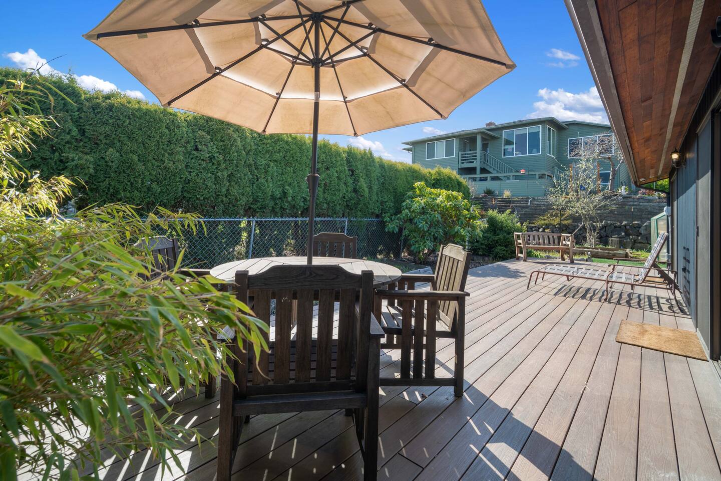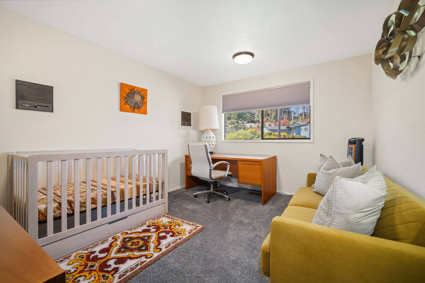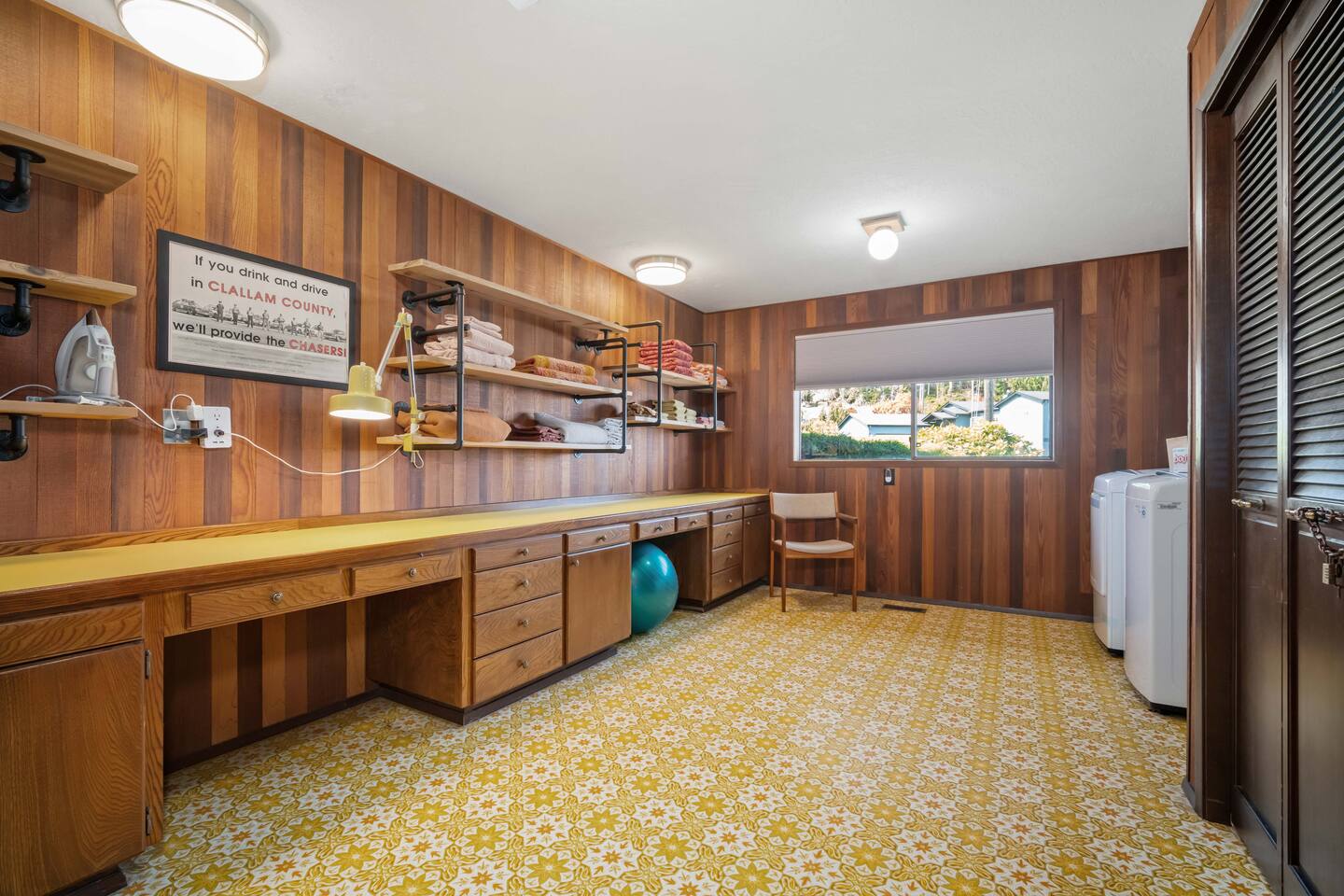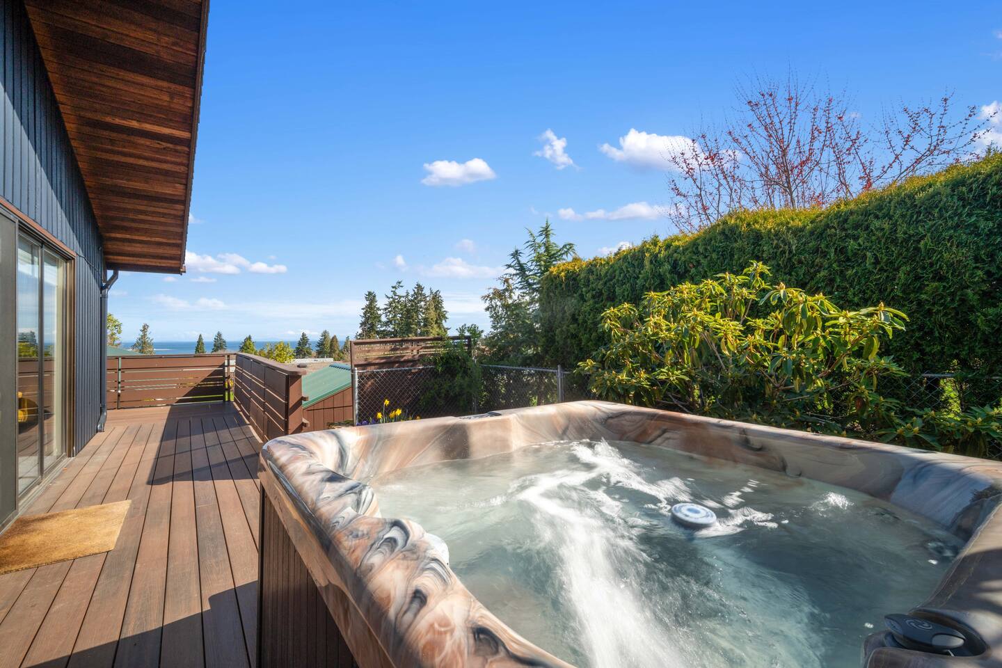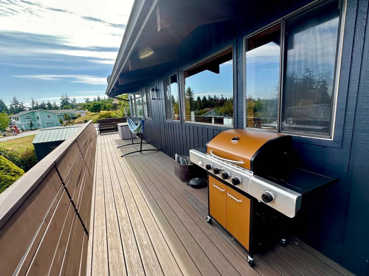 Master Bedroom - Enjoy the biggest bedroom of the 3, with a king bed, ensuite bathroom with a walk in shower and separate bath tub and large vanity and closet. Step outside in the morning right from your room, onto the back deck where you'll find the hot tub overlooking the Straits of Juan De Fuca. Note, all rooms have their own sliding door onto the deck, so yours won't be the only access to the hot tub. Each set of sliding doors has full black out blinds for your privacy and comfort. Bedroom 2 - Just down the hallway and across from the second bathroom, you'll find a queen size bed, bookshelf, full closet, and sliding doors out to the back deck. Please note all rooms feature black out blinds. Bedroom 3. At the end of the hall and across from the office, you'll discover a 3rd queen bedroom, with dresser, closet and sliding glass doors out to the back deck. Please note all rooms feature black out blinds. When you're not sleeping, you'll have a spacious living room to enjoy, large kitchen, dining room, office and laundry room. The wraparound deck with a hammock, hot tub, picnic table and loungers is our favorite place to be though.