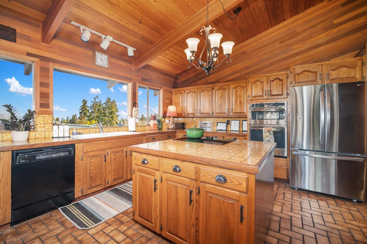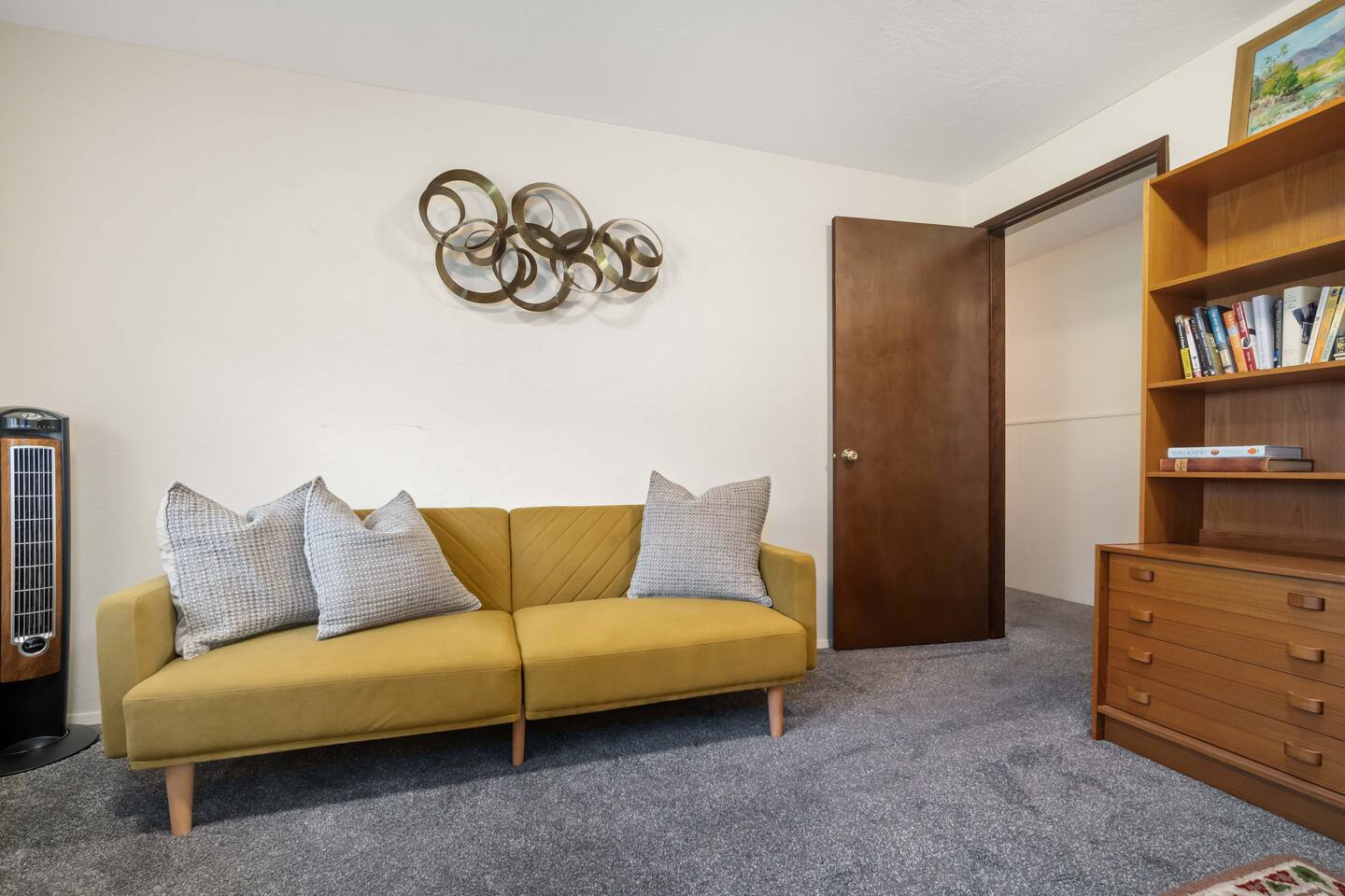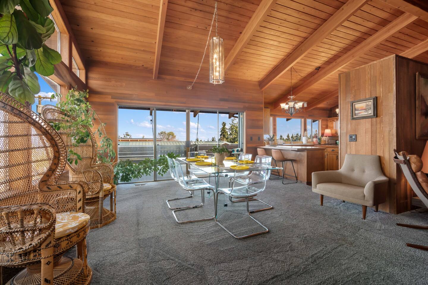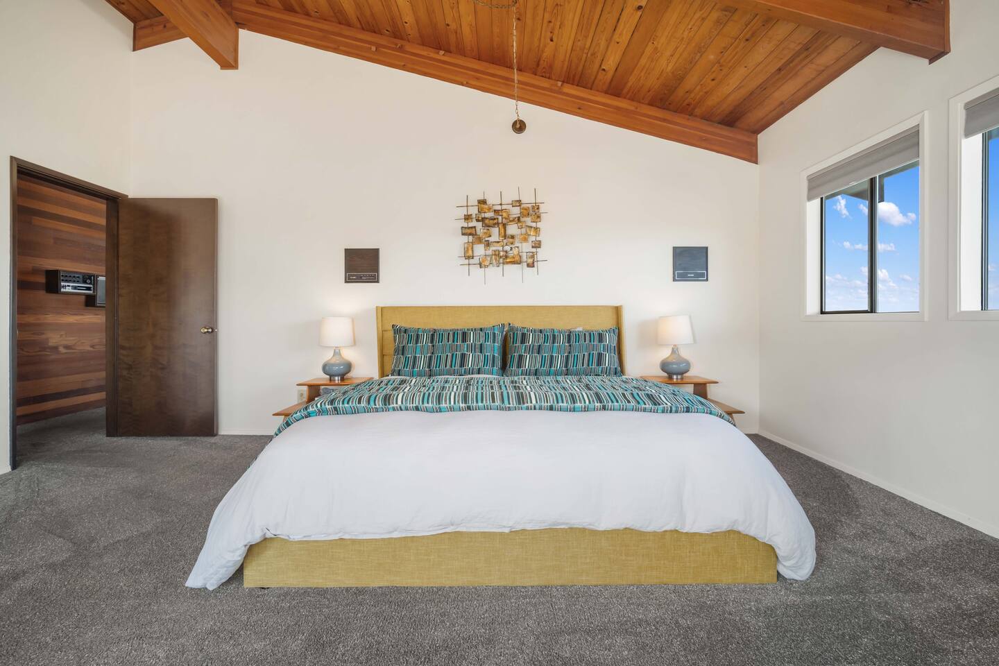 Enjoy the panoramic views from our single story, open layout lady liberty lookout listing. This is the perfect listing for a large family or a couple’s getaway. Enjoy three private bedrooms, one ensuite to a bathroom. Each bedroom has a sliding glass door out to the large backyard patio where you’ll find the outdoor dining, lounging and hot tub. This home is a curator’s paradise, featuring era art, decor and furniture. Check out our insta @pacweststays to see a reel touring the space!