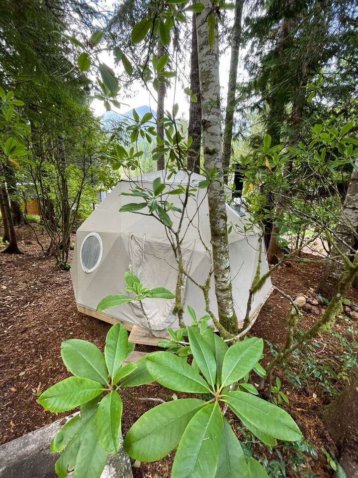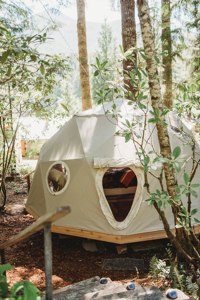 You can't get closer to Olympic National Park’s own Hurricane Ridge, than our perfectly secluded 120 square ft. glamping tent. Only 1.5 mile from the ONP entrance station, 1 mi. from popular hiking trails and 5 mi. from downtown Port Angeles. While being nestled amongst ancient cedar, douglas fir and alder trees you’ll feel as though you’ve trekked to the top of a nearby mountain… with the luxury of your vehicle parked nearby and the comfort of a wood stove!